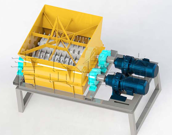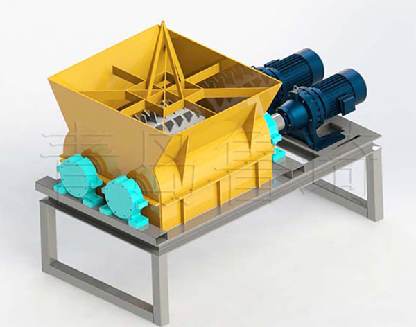 在各種化工行業(yè)中都很多物料都是噸袋式存儲(chǔ)原料,例如農(nóng)業(yè)生產(chǎn)中用到的磷酸銨類肥料、生物肥料、有機(jī)肥料,畜牧業(yè)中的飼料顆粒等等,這些物料由于自身性質(zhì)以及存儲(chǔ)條件的局限,在長(zhǎng)久的存放時(shí)會(huì)受季節(jié)、溫度、濕度的影響造成受潮板結(jié)的現(xiàn)象。針對(duì)于這種物料板結(jié)現(xiàn)象解決辦法就是人工用木棍、錘頭等敲擊粉碎。在敲打過程中耗費(fèi)人力物力工作效率較低,還易造成包裝袋的破損影響運(yùn)輸,以及物料敲打不均仍存在結(jié)塊,不能有效的解決各種板結(jié)物料的松散問題。